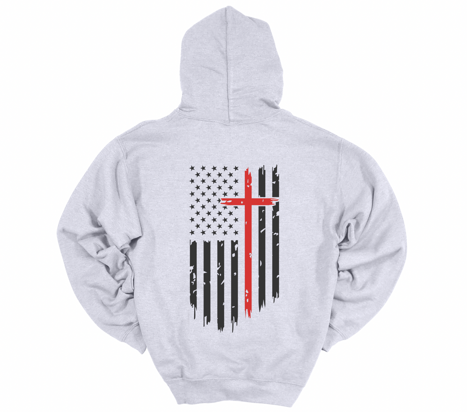 A bold design that represents faith first. This soft gray hoodie features a distressed American flag with a red cross on the back, reminding us that our foundation is in Christ above all else. A simple black “H” on the front keeps the look clean while quietly representing Humble Apparel.